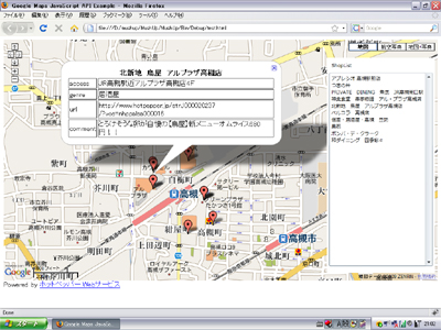 マーカーをクリックしてもリストの店舗名をクリックしても説明が出るはず…!